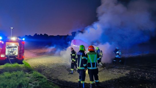 Wir wurden am Samstag den 09.08.2025 um 21:16 Uhr zu einem Brand einer Strohballenpresse nach Pfaffendorf alarmiert.